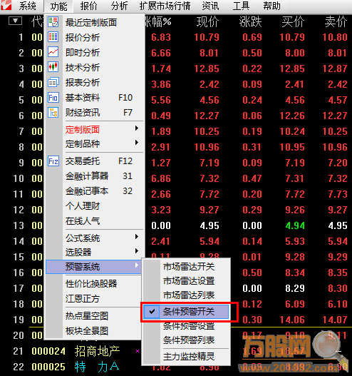 预警的好处就是在盘中发现符合条件的股票,电脑自动弹出来,以便我们及时作出决策。