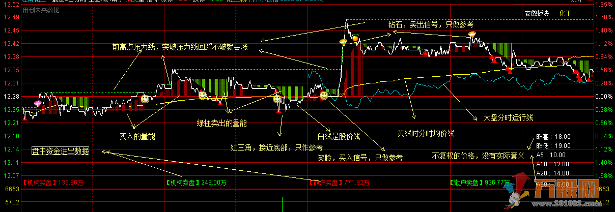 万股分时主图【因为里边有未来函数,所以那些笑脸,钻石只做参考,不作买卖依据,指标不加密,重点的使用方法在下边,解析在图上已做了标记】