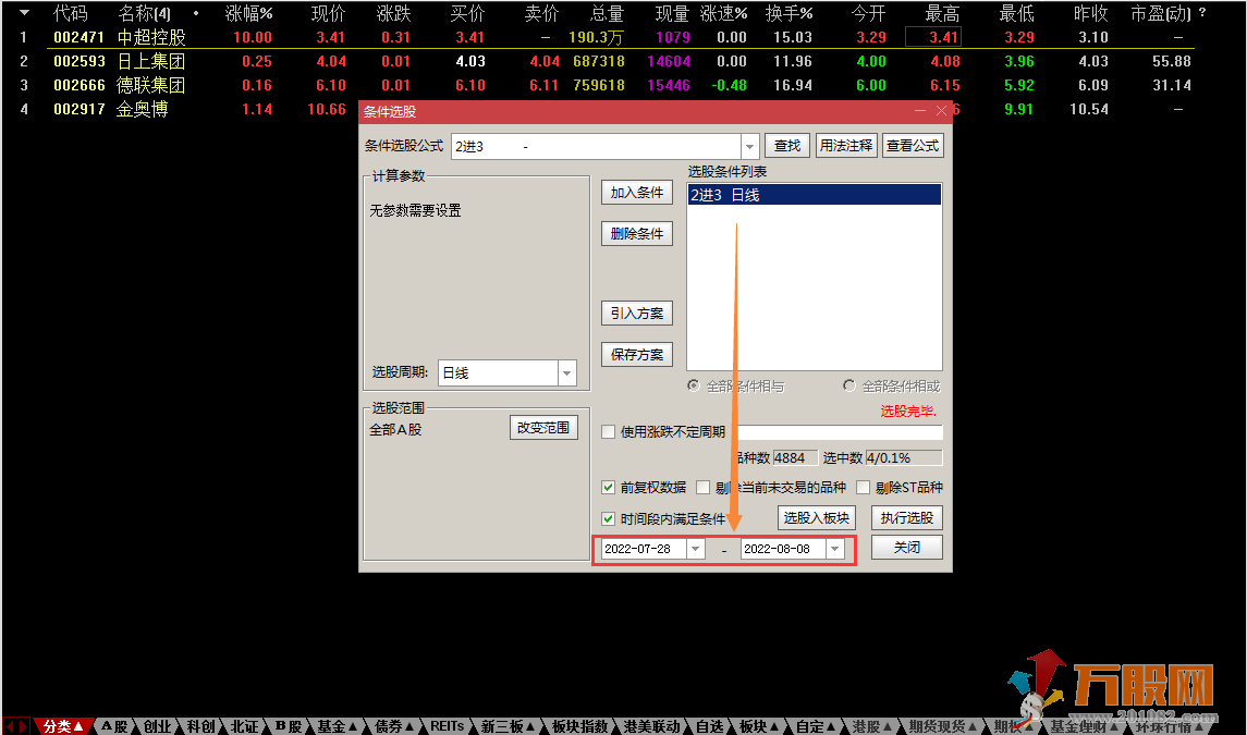1、ctrl+f 导入后可设置条件预警(或盘中直接检索)。