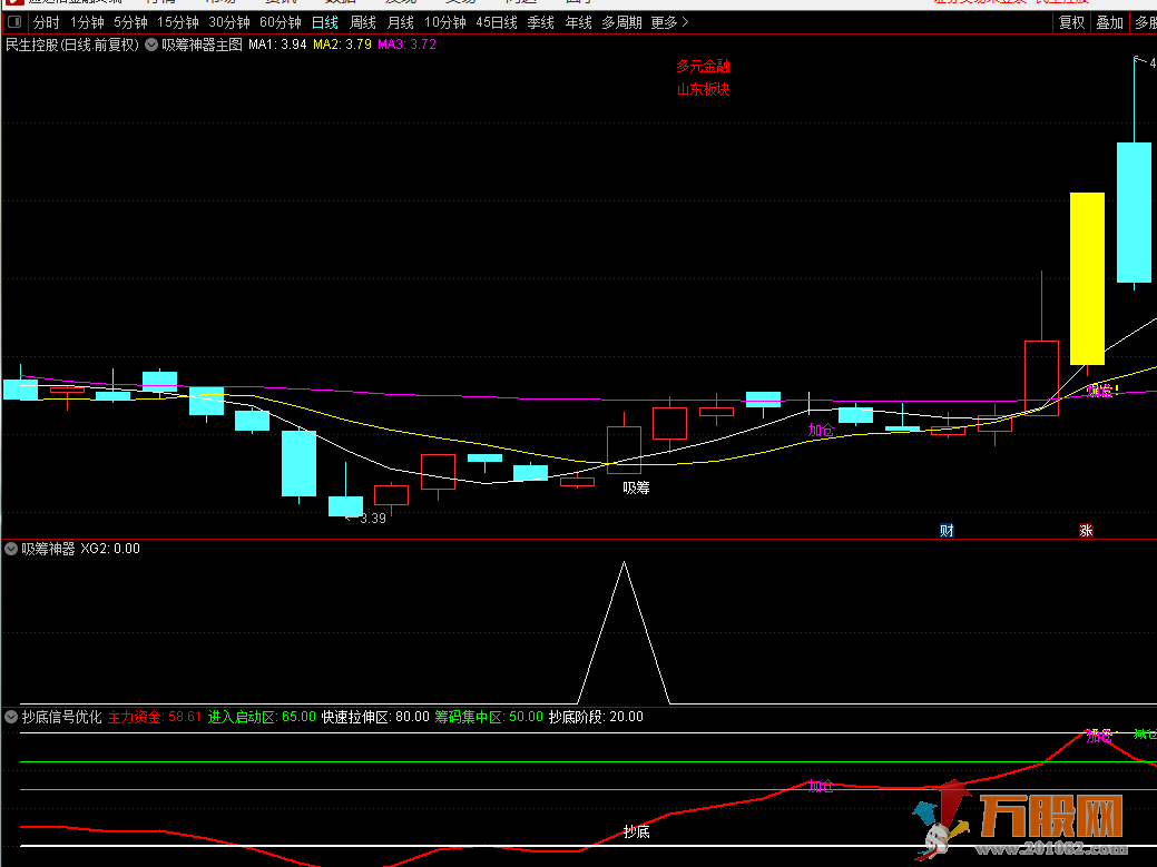 吸筹神器主图幅图选股指标,信号很少,方便选股,无未来函数,可手机通达信使用。