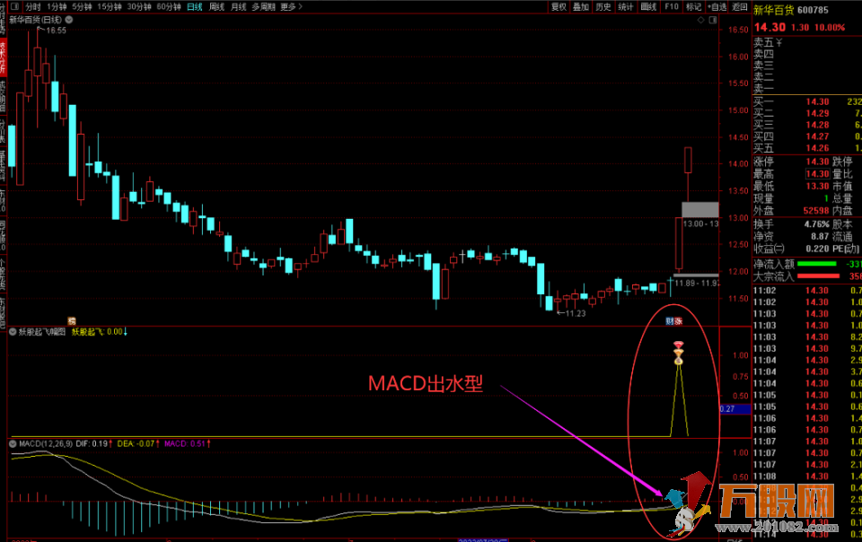 1、MACD出水型信号,这种上涨力度稍微弱些