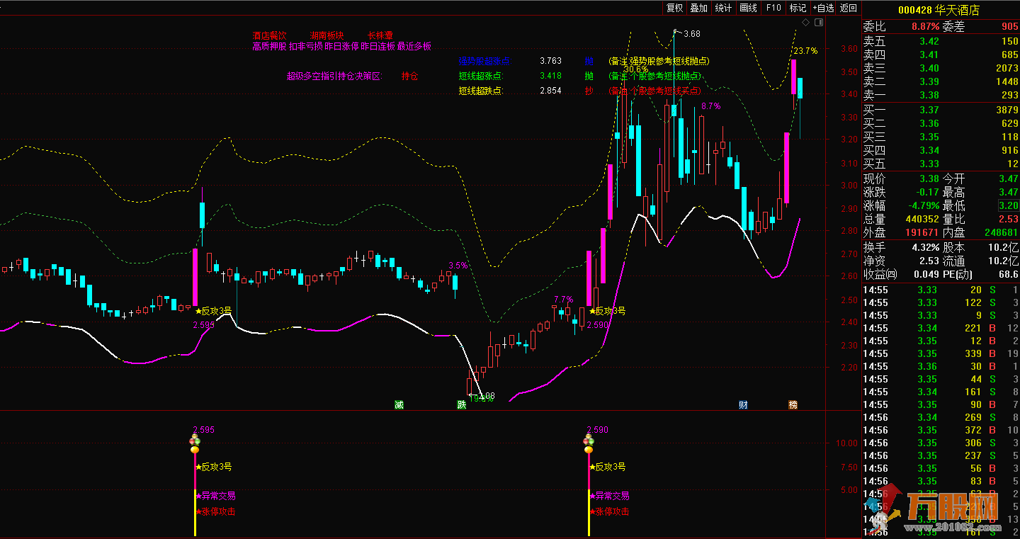 功能介绍:此反攻3号设计原理 打破常规操作模式 楼主以多年实战操作经验捕捉主力反攻而设计 此指标无未来 主要是以捕捉近期市场强势异动低位个股 符合启动拉伸主浪为捕捉对象
