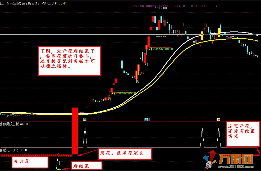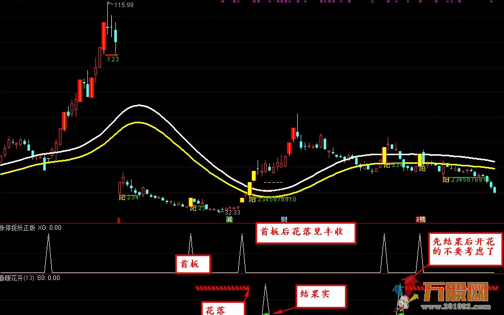 3.总结就是 先要开花,再结果后就可以买入,或者开花后见【涨停捉妖】发信号,可以买入。短线(2-9天)的指标,先开花后结果,首板后落花可以介入。更多的使用方法,看下面的图片说明。
