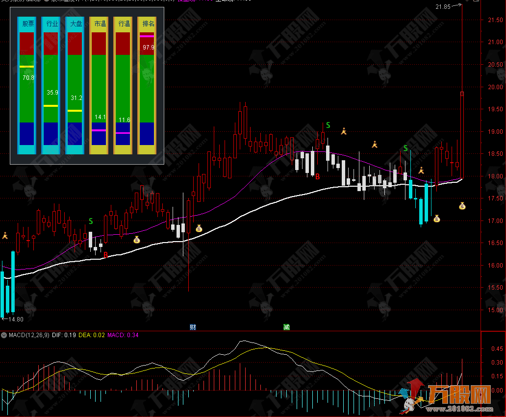 温度计精品主图指标 叠加行业、大盘K线,实时监控股市温度