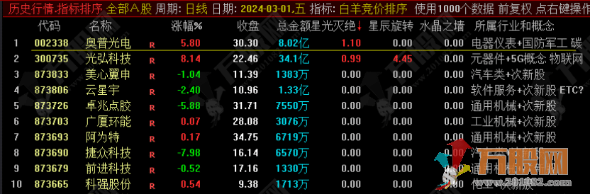 【白羊竞价排序指标】可回看历史数据 需要下载财务数据使用