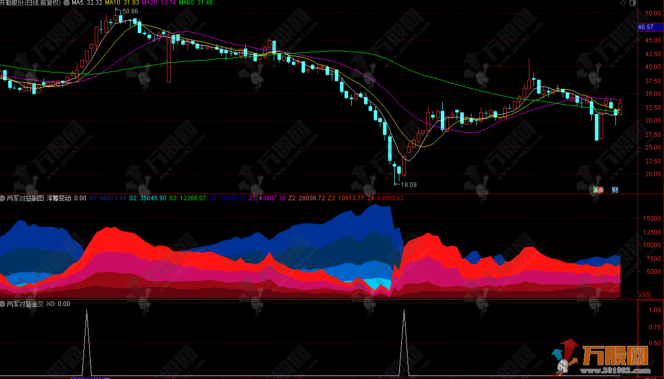 该指标很直观的展现了多空双方力量的消涨,红色系色带代表多头力量,蓝色系色带代表空头力量。用法也很简单,当红色系色带超越蓝色系色带时择机跟进,当蓝色系色带超越红色系色带时择机减仓或卖出,其它情形可观望。注意本指标只具备一定的参考价值,结合其它指标使用能增加可靠性。指标含有筹码函数WINNER、COST,介意的勿扰。