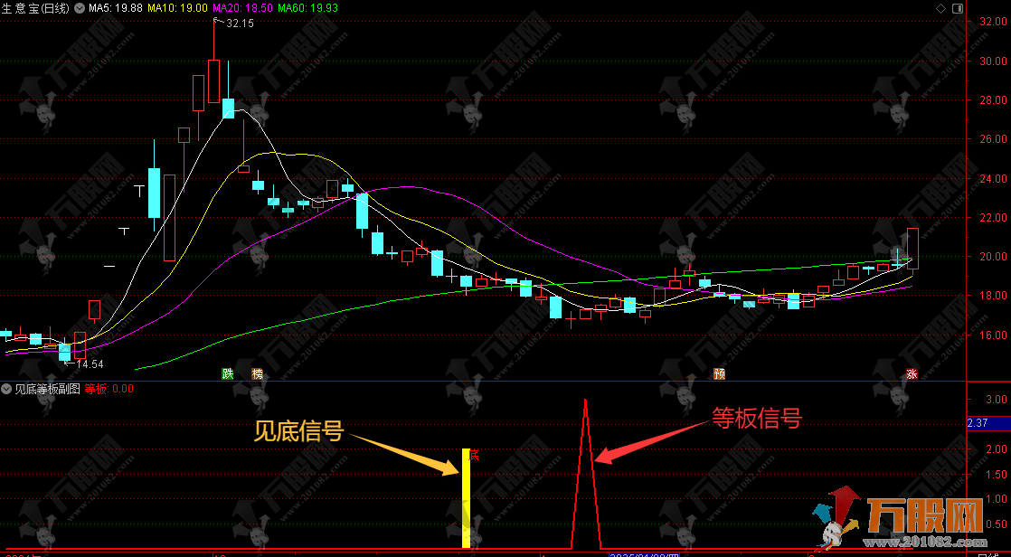 1、黄色柱表示见底信号,红色突表示等板信号。