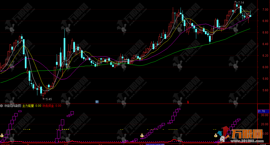 指标名为“冲锋陷阵”副图指标,包含选股指标,指标没有未来函数。
