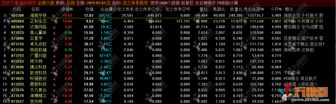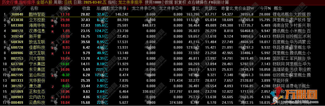 通达信【龙之传承排序】竞价排序工具 竞价策略首选 全市场周期通用型竞价指标! ...