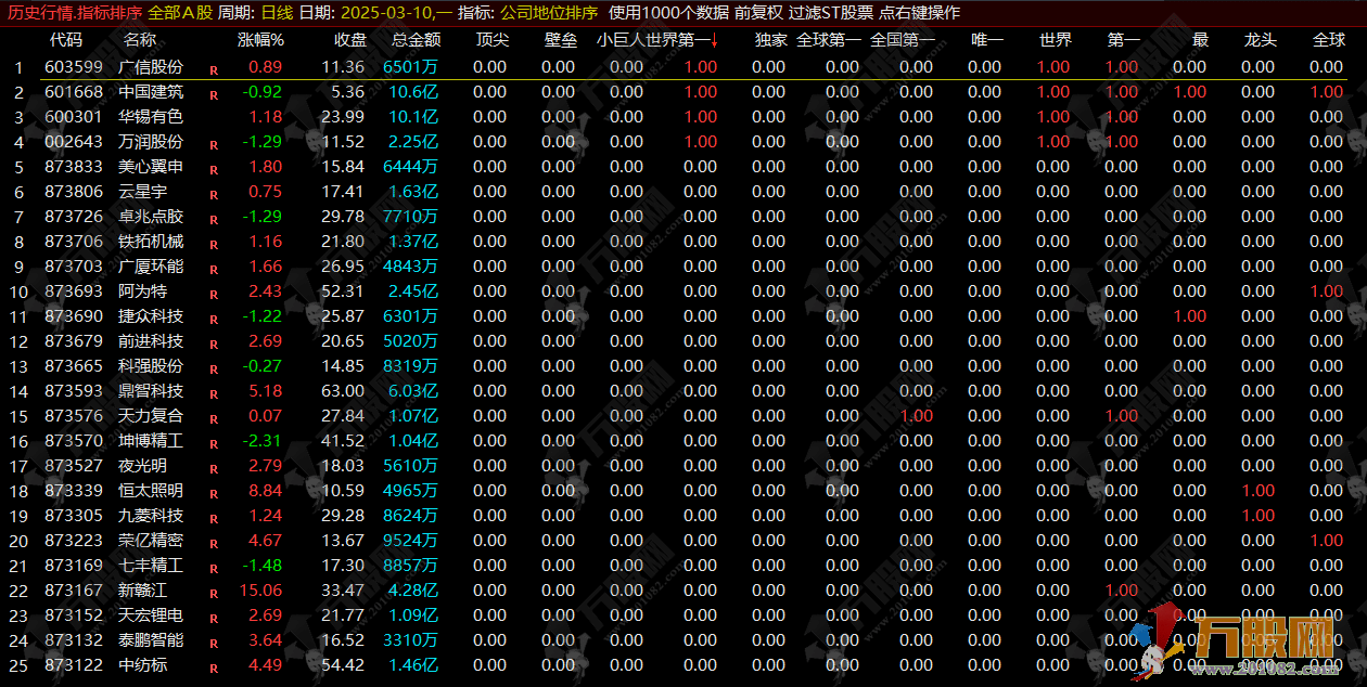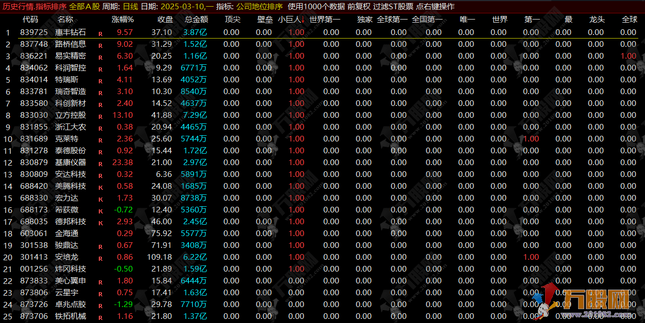 顶尖是搜索关键词,10010是通达信自带的“公司地位”自定义数据。
