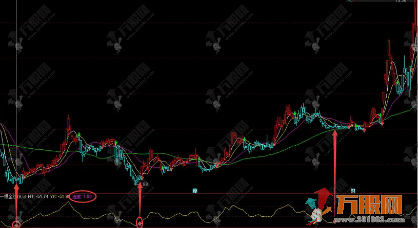 指标用法:出现红箭头信号,即买入=1时,可以买入。