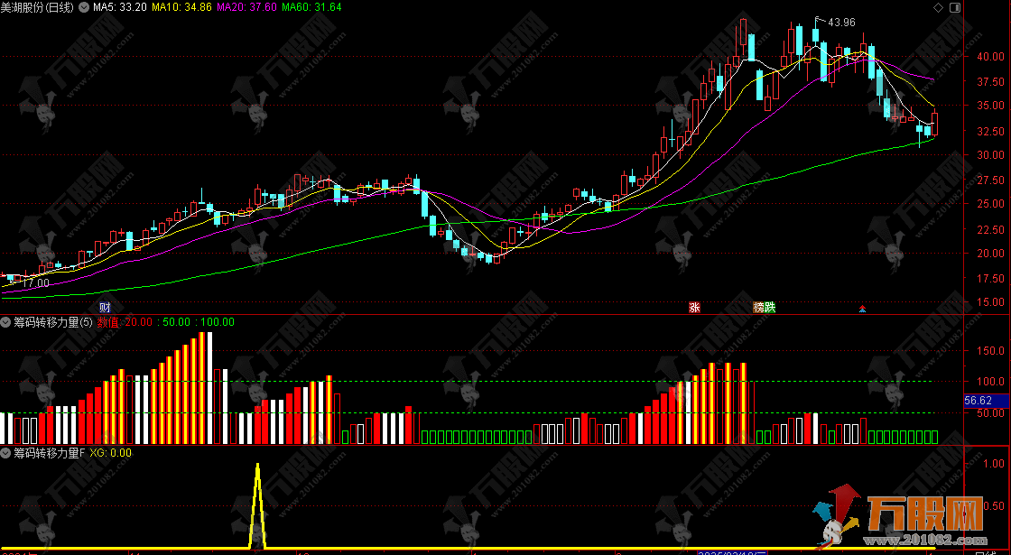 通达信【筹码转移力量】副图指标 捕捉个股强弱转折点 红柱即转强信号