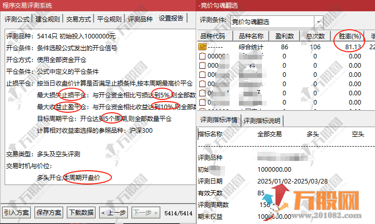 4、实战评测,所谓的实战评测,就是比较贴近实际操作的,我们按照开盘进,拿5天,期间,负5个点就割,正10个点才算达到目标,能达到这样的水平的概率是81%: