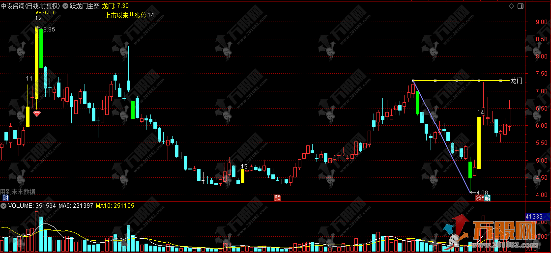 【跃龙门】主图指标 自动标记历史所有涨停/跌停 可视化压力线压力|高低点画线 ...
