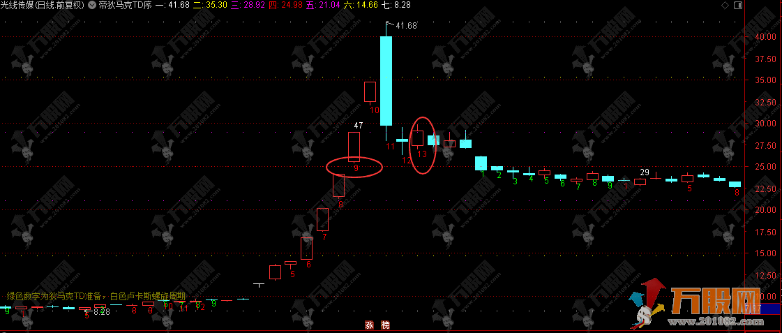 一、绿色数字(TD准备序列)当出现连续绿色数字1-9时,表示市场可能进入反弹准备期:
