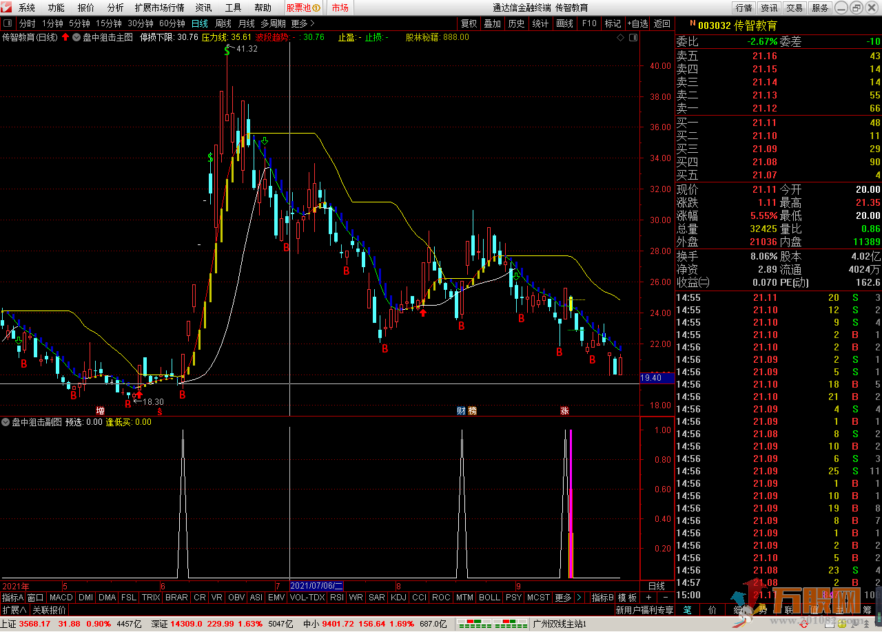 下面看一下我上午随便截的个股的信号: