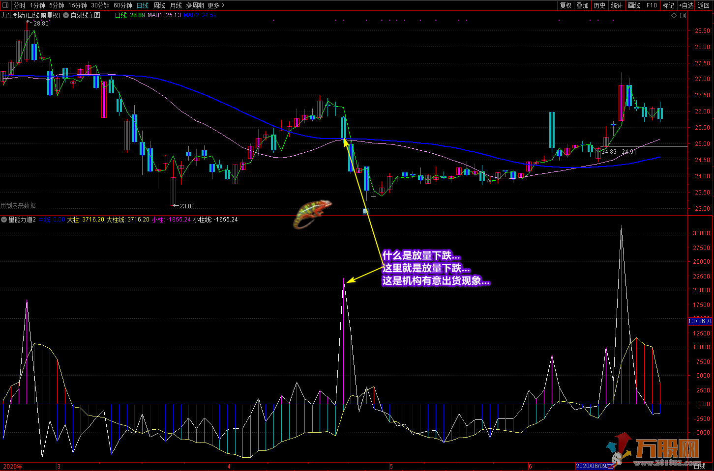 通过这多年的指标实战操作和不同指标对比,深刻体会到所有指标中量能指标是最具实战能力,最能真实反映机构主力动向的重要工具。为什么我一直青睐和研究成交量指标?因为成交量指标一直是反映机构主力存在与否和进出货的重要指标。其它趋势指标根本无法与之比较。因为趋势指标只能以从前看到眼下目前发生过的走势,没办法看到以后的发展趋势,系统自带的成交量指标也是如此。虽然VOL指标多年来众多投资者也都在研究和使用它,但一般人很难掌握它,用于实战也并不容易。我是常用它来分析和判断主力动向和作为买卖的重要参考。学透了它可以说就可以很明白地把握机构主力意向,让你完全清楚和知道庄家或大户何时进、何时出,对炒股操作者来说有很高的实用价值。从前期发布的《彩虹量能线》指标的使用情况看,有位同学对指标理解领会的相当好,几乎每天都有好消息传来,这也是我所欣慰看到的,同时也为他高兴。