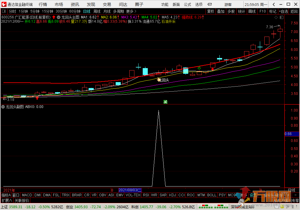 3、“龙回头”信号要尾盘买,盘中出信号后到尾盘信号消失的不操作。