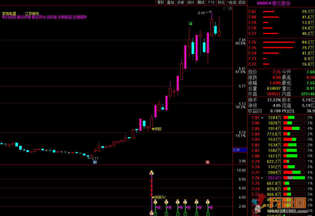 功能介绍:本指标是一款短线预报涨停利器指标 自预报当天起个股至1-5个交易日捕捉涨停板 此款指标经过楼主 多年的实战操作经验心得所编写